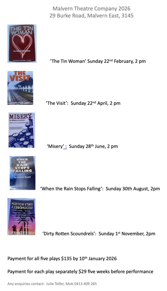 Malvern Theatre MALVERN THEATRE COMPANY 2026 These are the plays that the Malvern Theatre Company will be putting on Screenshot The Malvern Theatre 29 Burke Road, Malvern East